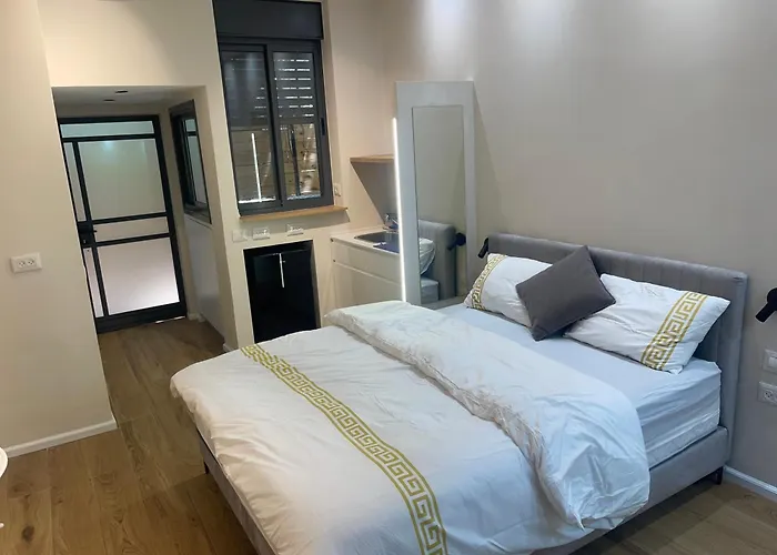 The 25 m² דירת גן יפהפיה בחובבי ציון Apartment boasts views of the garden and is located just 1.3 km from the habimah Habima Square.